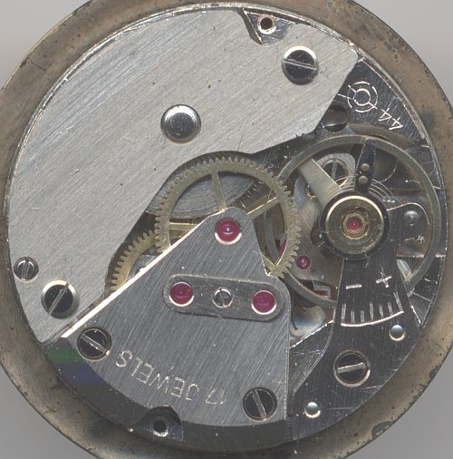Zifferblattseitig wird ein billiger Wippenaufzug eingesetzt, und auch der Rückerzeiger zum Justieren des täglichen Gangs fehlt, obwohl seine Skala noch auf dem Unruhkloben vorhanden ist.