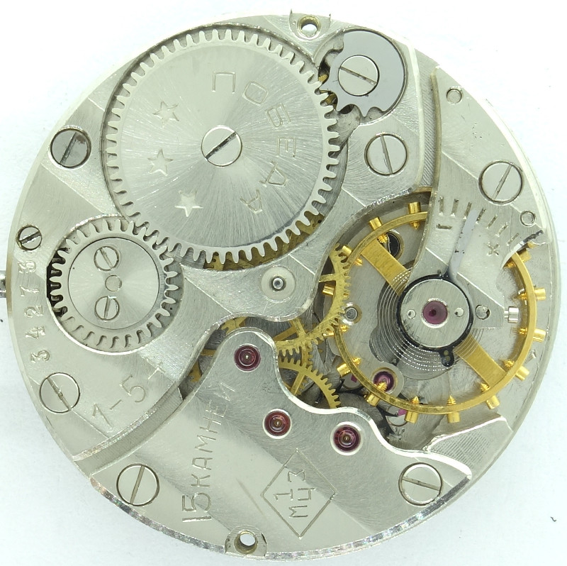 Die erste Moskauer Uhrenfabrik (später als “Poljot” bezeichnet) erwarb 1937 von Lip die Konstruktionszeichnungen und Fertigungsanlagen des Kalibers Lip R-26 und entwickelte daraus die “Pobjeda”-Kaliberserie an recht hochwertigen Handaufzugswerken mit dezentraler Sekundenanzeige.