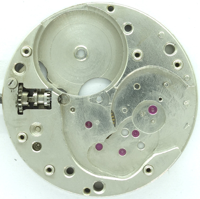 Die sehr ordentlich ausgeführte Grundplatine zeigt, dass dieses Werk sehr ernst zu nehmen war, sie ist sauber verarbeitet und natürlich an allen wichtigen Stellen mit Steinlagern ausgestattet.