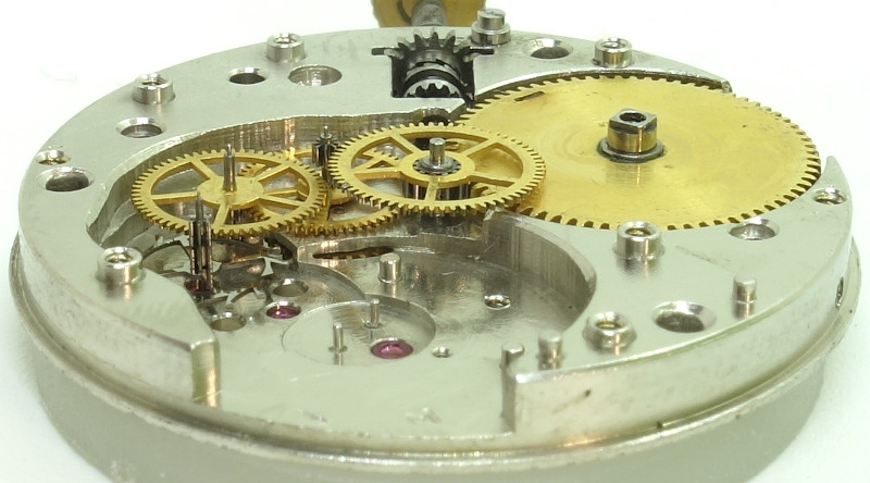 Auf der Zifferblattseite gibt es nur einen einfachen Radialschliff, ansonsten kann man hier schön die stabile Winkelhebelfeder erkennen, sowas ist fast für die Ewigkeit gebaut!