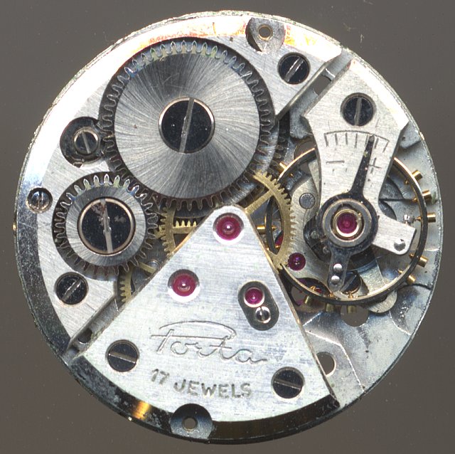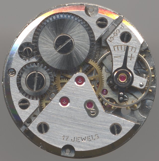 Das PUW 60, das in den 50er Jahren von den Pforzheimer Uhrenrohwerken lanciert wurde, war ein 10 1/2 liniges Uhrwerk mit direkter Zentralsekunde, das sogar in einzelnen Ausgaben zu Chronometer-Ehren gelangte. Aber auch die normalen Versionen konnten sich durchaus sehen lassen, war doch das Werk mit Schraubenunruh, verschiedenen Stoßsicherungen (im ersten hier vorliegenden Werk beispielsweise ein dreischenkliges Modell, im zweiten Werk eine Super-Shock-Resist) und 17 Steinen, darunter zwei als Decksteine für das Ankerrad, optisch und technisch auf einem sehr hohem Niveau und steht zeitgenössischen schweizer Ankerwerken, wie beispielsweise einem ETA 2390 in nichts nach.
