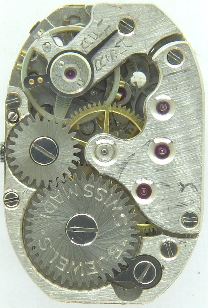 Es stammt aus den späten 1940er Jahren und kommt in der damals beliebten Tonneau-Form mit einer Breite von nur 5 1/4 Linien daher. Schön sind seine geschwungenen Brücken und Kloben, die ein sehr harmonisches Bild abgeben.