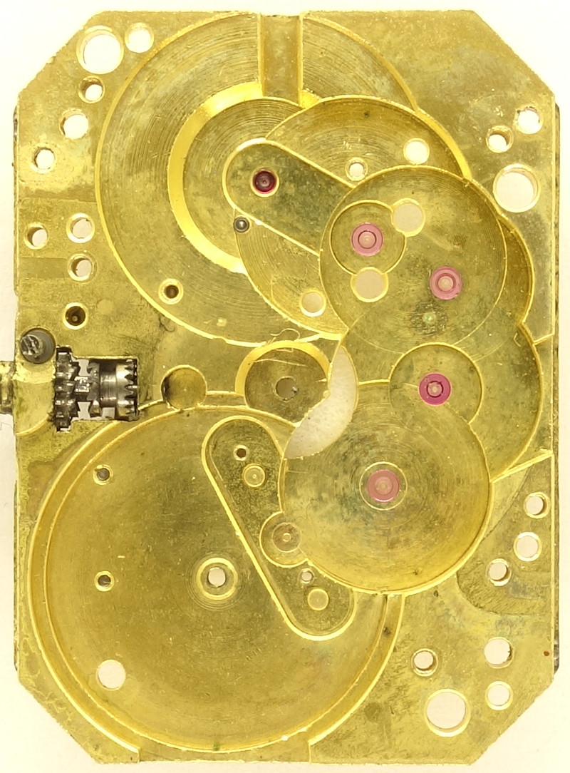 Wie üblich, sind fast alle wichtigen Lager mit Steinen versehen. Einzig dem Trieb der indirekten Sekundenanzeige hätten Lagersteine gut zu Gesicht gestanden, da sich dieses Rad bekanntlich einmal pro Minute dreht und dadurch noch ein wenig empfindlich gegenüber Reibungsverlusten ist.