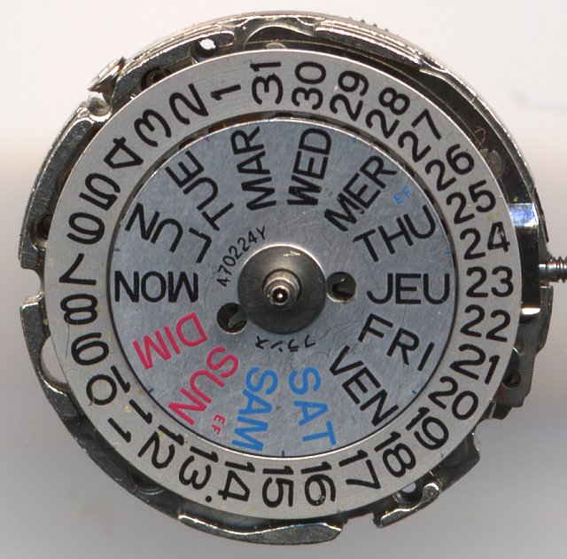 Tag und Datum dieses Werks wechseln langsam, können aber über die mittlere Kronenraste schnellverstellt werden.