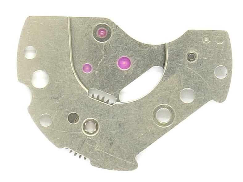Da es nur eine kombinierte Räderwerks- und Federhausbrücke gibt, befindet sich auch das Gesperr auf dieser. Es ist, genau wie das Kronrad, vernietet und einfach, aber funktioniell ausgeführt.