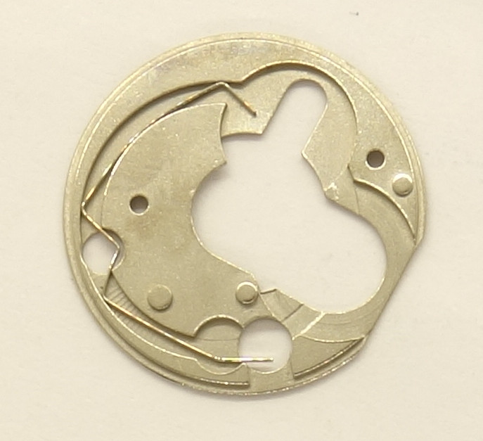 Der (wahrscheinlich im vorliegenden Exemplar nicht vollständige) Datumsmechanismus wird mit einer Abdeckung gesichert, die eine Feder lagert, die für das Einrasten des Datumsrings sorgt.