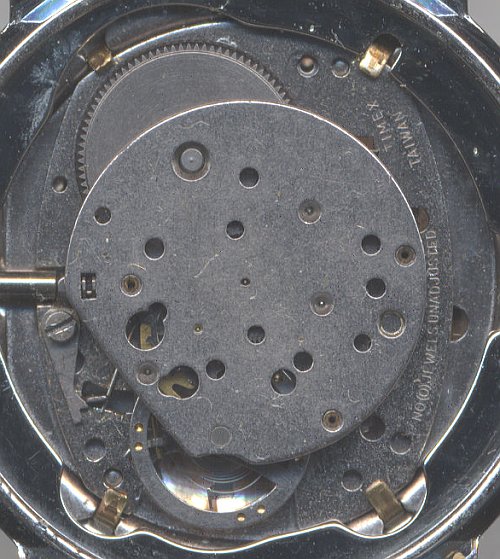 Das Kaliber M104, ein um eine Zentralsekunde erweitertes Kaliber M100 wurde auch in Herrenuhren eingebaut. Es zeigt hier klar seine fernöstliche Herkunft.