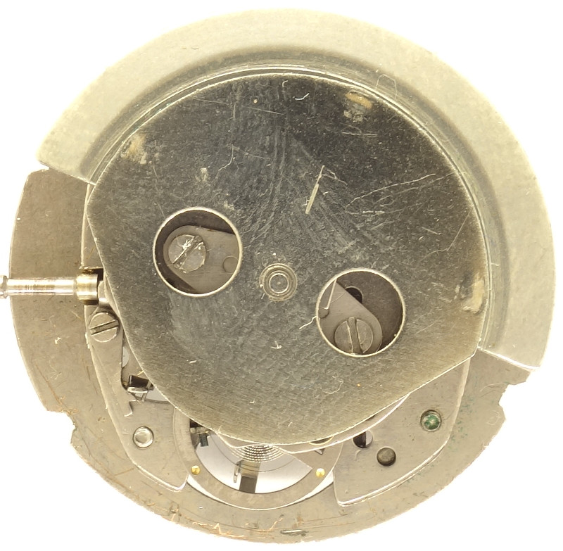 Eine konstruktive Besonderheit dieses Werks ist, dass die Datumsscheibe zwischen vier Stiften fliegend gelagert ist. Sie wird lediglich durch das auf sie aufgesetzte Zifferblatt in Position gehalten. Das bedeutet, dass wenn auch nur eine der vier Laschen des Zifferblatts abbricht, was sehr leicht passiert, die Datumsscheibe nicht mehr in Position gehalten werden kann.