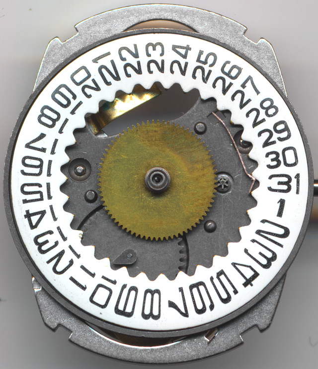 Die Datumsschaltung ist sehr simpel ausgeführt, eine Schnellverstellungen sucht man hier vergebens. Da das Werk aber mit neuer Batterie ein Jahr lang durchhält, muß eine Korrektur nur selten erfolgen.