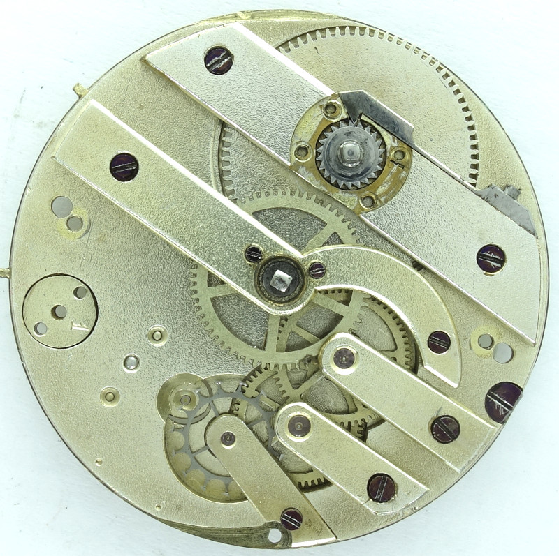 Das hier vorgestellte Werk dieser Bauform ist mangels Herstellersignatur keiner Fabrik zuordenbar, und auch über seine Größe von 13 3/4 Linien (vielleicht auch offiziell 14 Linien?), entsprechend 31,0mm, ist keine nähere Bestimmung möglich.