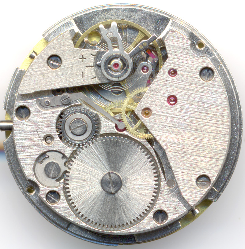 Das Räderwerk ist mit direkt angetriebenem Minutenrad und indirekter Zentralsekunde Stand der Technik der 50er und 60er Jahre.