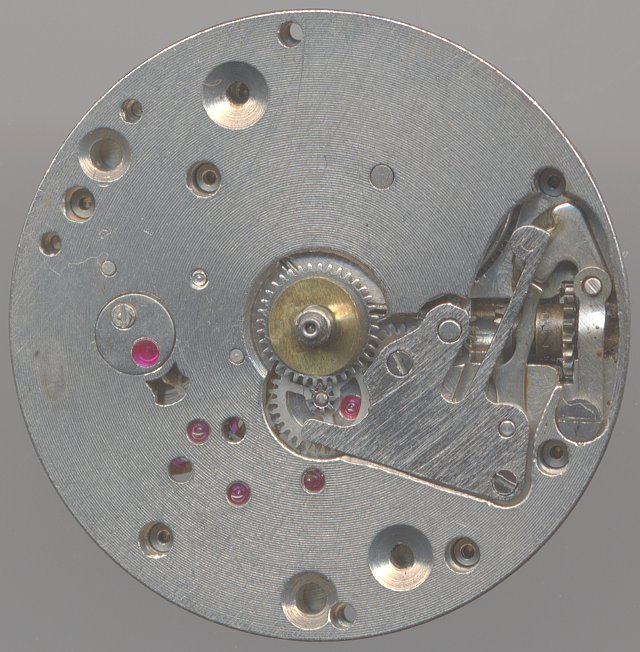 Dieses Werk macht den Eindruck, als würde es geradewegs aus den 30er Jahren stammen. Es besitzt keine Stoßsicherung, dafür eine dezentrale kleine Sekunde, und die geschwungenen Platinen erinnern auch an alte Zeiten. Der Grund dafür ist, daß es sich um einer Nachbau des französischen LIP R-26 handelt.