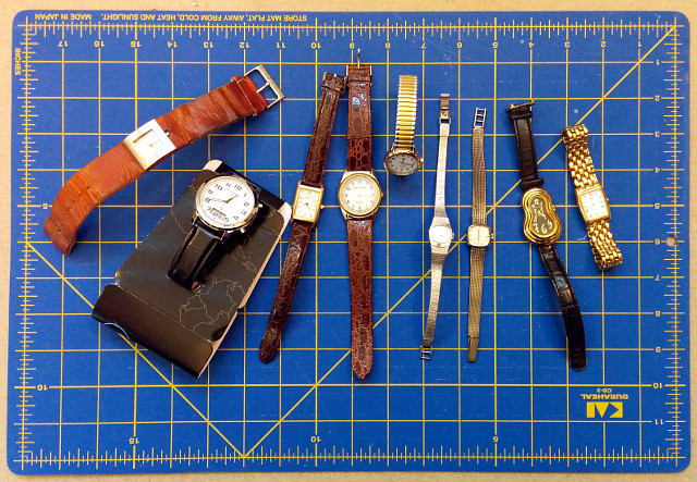 Das Paket enthielt diverse Quarzuhren (mit teilweise noch ungebrauchten Bändern), darunter eine nagelneue, ungebrauchte Herren-Funkuhr, sowie zwei mechanische Damenuhren, eine Seiko mit Kaliber 11A und eine Roamer mit einem ETA 2412.
